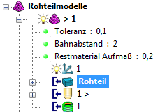 Wenn Sie die Berechnung jedes Status löschen (dies ist möglich, indem Sie einfach die Berechnung des Blocks entfernen), können Sie die Rohteilmodell-Parameter (z. B. Toleranz, Bahnabstand oder Arbeitsebene) ändern. Dadurch können Sie ein Rohteilmodell bei verschiedenen Toleranzen erstellen, ohne die Werkzeugwege erneut anwenden zu müssen.
