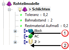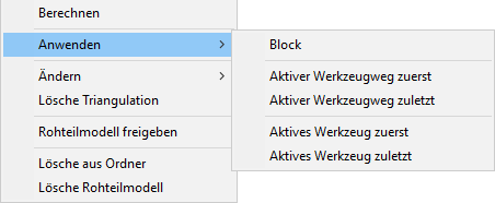 Alternativ können Sie die Optionen im Kontextmenü eines individuellen Rohteilmodells verwenden. Klicken Sie im Explorer mit der rechten Maustaste auf ein Rohteilmodell, um das Kontextmenü anzuzeigen: