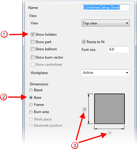 - Klicken Sie auf Weiter, um zum nächsten Schritt des Elektrodenassistenten zu gehen, oder klicken Sie auf Beenden, um den Assistenten zu beenden. Die Bemaßungen, die Sie ausgewählt haben, werden im kombinierten Einrichtblatt angezeigt.
