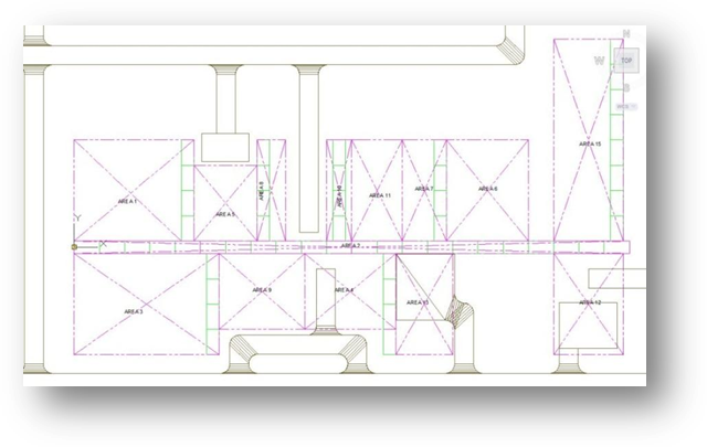 Im obigen Beispiel haben wir uns für die Einrichtung von 14 Bereichen entschieden. Jeder Bereich kann von einem leitenden Konstrukteur verwaltet werden, aber für jeden Bereich gibt es ein Konstruktionsteam mit Konstrukteuren aus den Disziplinen Apparatelayout, Statik und Rohrleitungen.