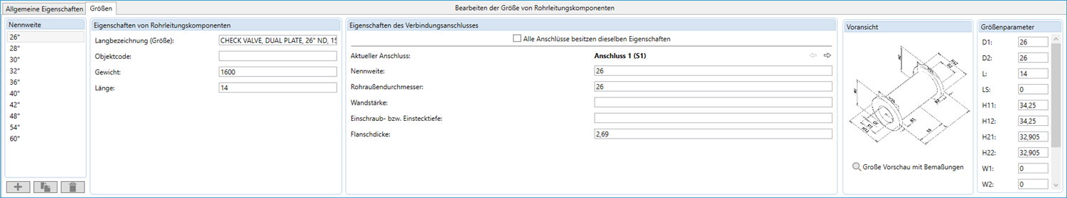 - Nennweite hinzufügen