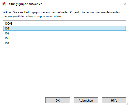 Die ausgewählte, nicht zugeordnete Leitungsnummer befindet sich nun in Leitungsgruppe 101, wodurch das vorgegebene Tag des Leitungssegments teilweise festgelegt wird.
