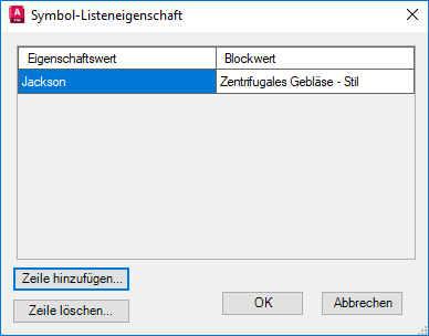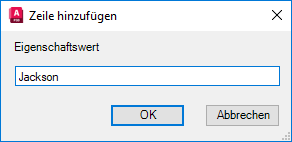 - Geben Sie im Dialogfeld Zeile hinzufügen unter Eigenschaftswert einen Namen für den neuen Symbollisteneintrag ein (z. B. Jackson). Klicken Sie auf OK.