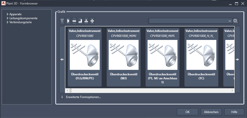 Anmerkung: Der angezeigte Teiltyp basiert auf dem Teil, das im Generator für benutzerdefinierte Teile ausgewählt wurde.