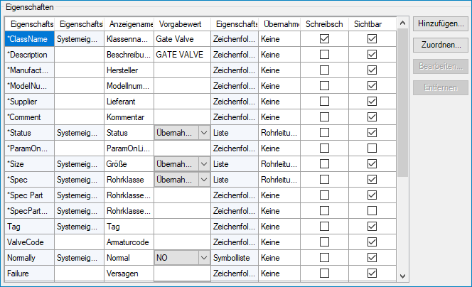 Weist technischen und nicht-technischen Komponenten und Liniendefinitionen Eigenschaften zu.
