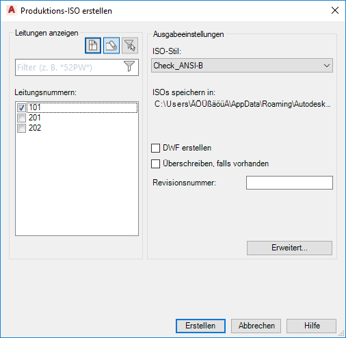 Legt die in die isometrische Zeichnung oder in die PCF-Datei aufzunehmenden Leitungen fest.