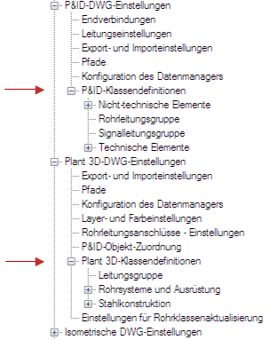 Die folgenden Gruppierungen von Klassendefinitionen auf hoher Ebene gelten für Plant 3D:
