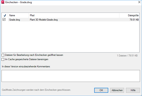 Die Zeichnung wird sofort ausgecheckt, ohne dass ein Dialogfeld angezeigt wird.