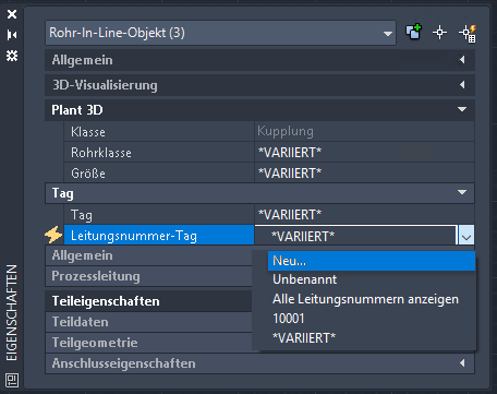 Der Zugriff auf die Liste Leitungsnummer-Tag in der Eigenschaftenpalette ist nicht möglich, wenn die ausgewählten Rohrelemente nicht miteinander verbunden sind.