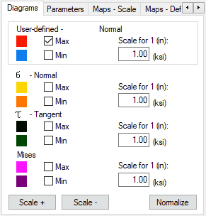 On the Diagrams tab in the Stress Analysis - Structure dialog, you can select a set of stresses that will display as diagrams on the structure.