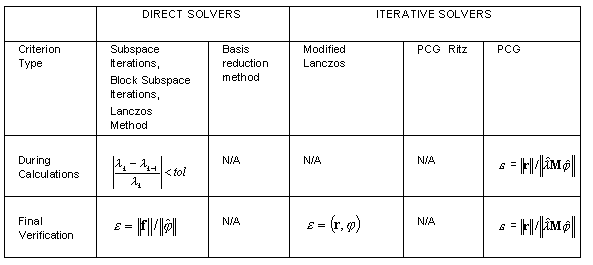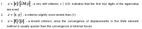 where λk, λk-1 - two successive eigenvalues on k, k-1 iteration steps and tol denotes the tolerance, adopted in the Modal Analysis Parameters dialog . Determining the final accuracy of calculations (1-3) is time-consuming and performed at the final stage of modal analysis to verify obtained precision. Decrease tol tolerance to increase calculation accuracy which increases the iteration number.