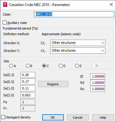 The parameters of the seismic simplified analysis according to the equivalent lateral force method depend on a seismic code and a method of defining the values of the fundamental periods selected in the Seismic Analysis dialog.