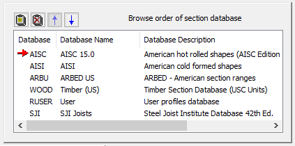 Currently active section databases are listed in this dialog. Organize the list with the following tools: