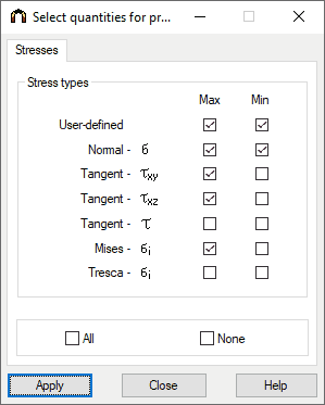 You can select minimal and maximal values for all available stress types and for user-defined stresses.