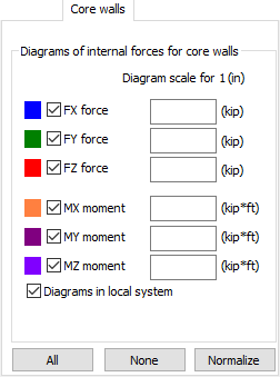 This dialog displays values for which the diagrams for the core walls will be presented.