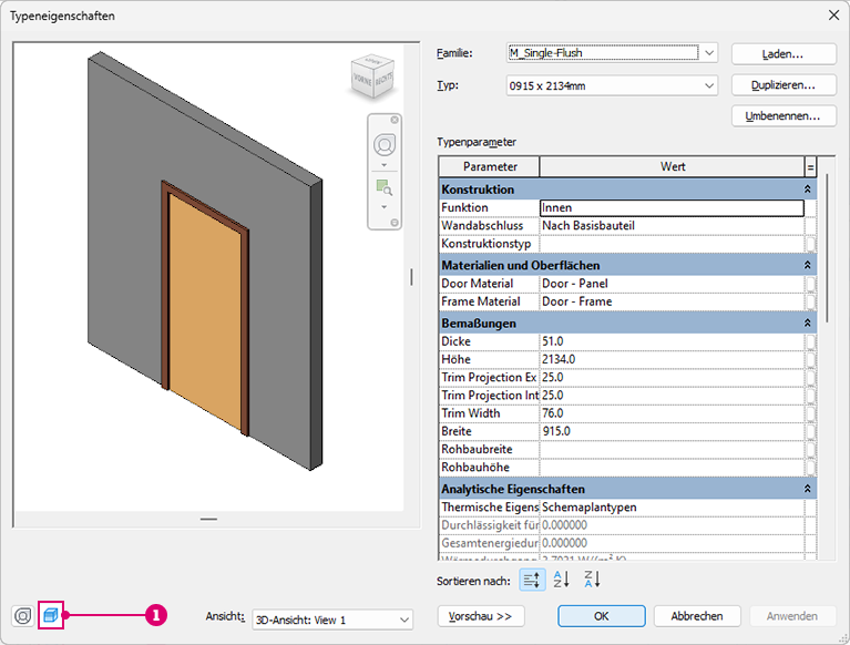 Um besser zu visualisieren, wie ein Element im Modell angezeigt wird, wenden Sie im Dialogfeld Typeneigenschaften einen Bildstil auf das Element an.