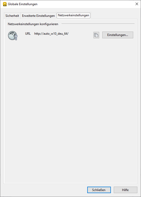 - Auf der Registerkarte Netzwerkeinstellungen wird eine Server-URL für die Verbindung mit dem Vault Client angezeigt.