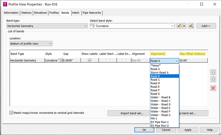 - Added a Max Offset Distance property as a range to limit a secondary alignment displayed in the cant band.