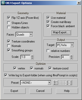 - Click to open the OBJ Map-Export dialog.