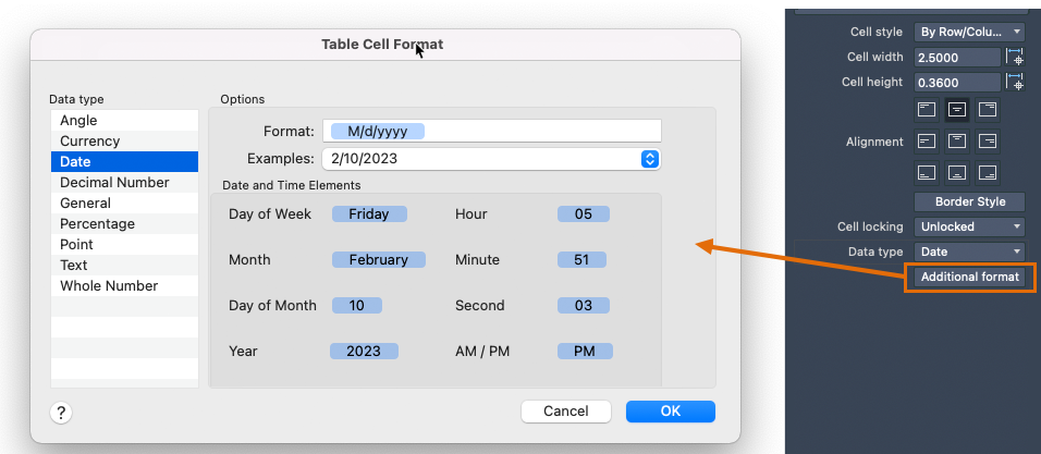 - If available, click Additional Format to display the Table Cell Format dialog box with more formatting options.