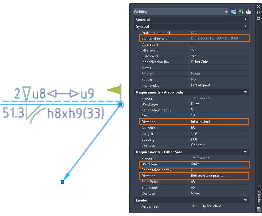 The welding symbol has been updated in AutoCAD Mechanical 2021 toolset to support the latest ISO and DIN standard revisions (ISO 2553:2013 and DIN EN ISO 2553:2014). The changes include the revision of the elementary and supplementary symbols, and the new weld notation (Distance between two points). The multi-reference line support is also added to the latest revision.