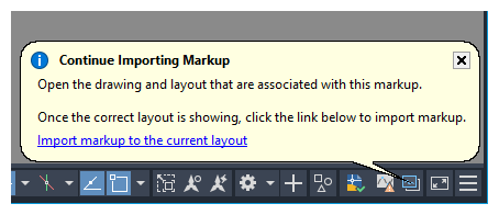 - Once AutoCAD opens, you're prompted to import the markup to a drawing layout (or model).