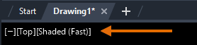 In the Shaded or Shaded with Edges visual styles, (Fast) is shown in the viewport control to indicate that the modern 3D graphics system is being used.