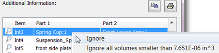 Right-click an item and select to ignore the selected volume or ignore all interference volumes less than a selected value.
