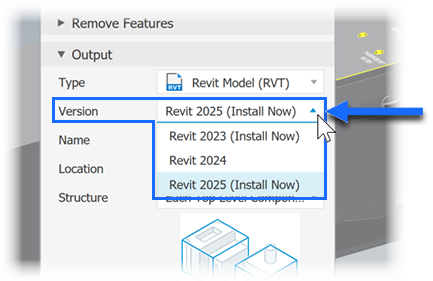 Version: Select the Revit version (2023 and newer) that you want to out put to.
