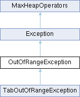 Inheritance diagram for OutOfRangeException:Public Member Functions | |