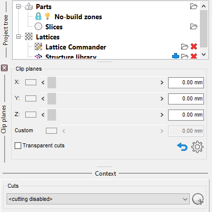 Netfabb's user interface consists of several panes, or views, arranged in a window layout. The layout of the interface can be adjusted by resizing, repositioning, stacking, even detaching the different views that make up the interface. This can be especially useful on a multi-monitor workplace.