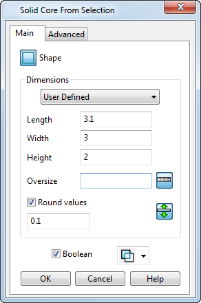 (default setting) to use set the dimensions of the core to the tightest values enclosing the selected items.
