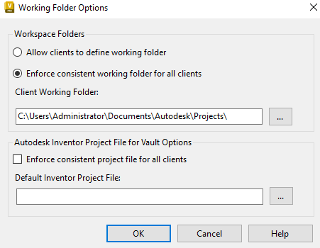 In the Working Folder Options dialog, select Enforce consistent working folder for all clients.