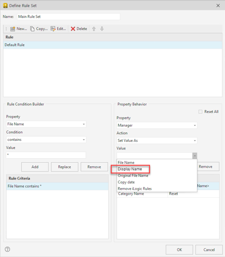 Until now, if the display name and the username are different, the property value for the file property shows the display name. However, the property value is set to "User" in the Copy Design rule set behavior. With this update, you can choose the property value (User or Display name) you want to display while defining the Copy Design rule set behavior.