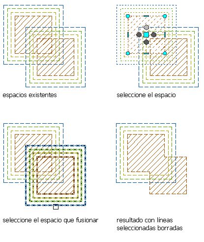 Si los contornos de espacio de los espacios que se van a fusionar se determinan con diferentes métodos, el método utilizado para el primer espacio seleccionado será el que se aplique al espacio resultante.
