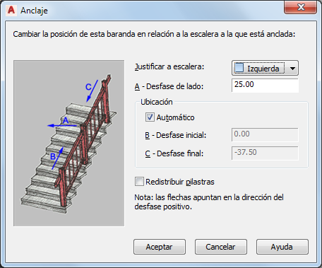 - Un valor cero coloca las pilastras inicial y final exactamente en los extremos de la escalera.
