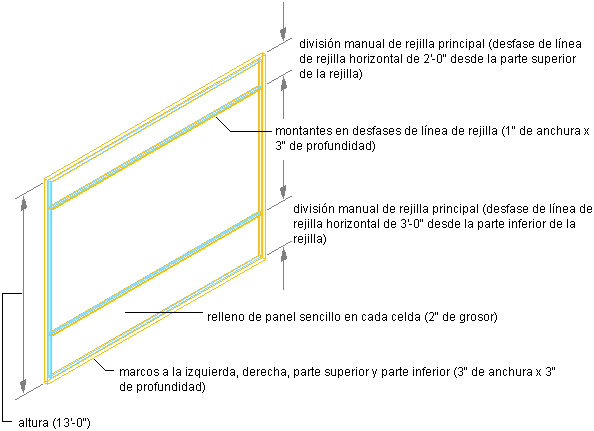 Las rejillas son la base de los muros cortina y las unidades de muro cortina. Cada rejilla se compone de cuatro tipos de elementos: