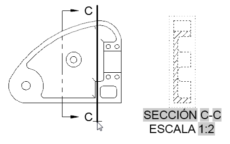 Especifica la etiqueta de la línea de sección y la vista en sección resultante.
