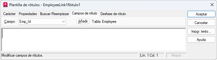 Añade al rótulo el campo seleccionado en la lista Campo.