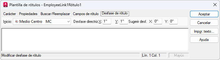 Define los desfases de las coordenadas X e Y del punto de inserción del rótulo y, si se trata de un rótulo enlazado, también de su objeto directriz asociado.