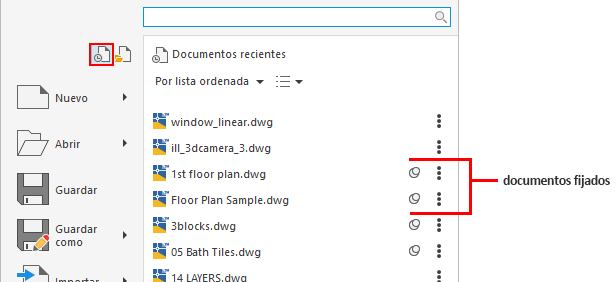 Por defecto, el archivo utilizado más recientemente se muestra al principio de la lista de Documentos recientes.