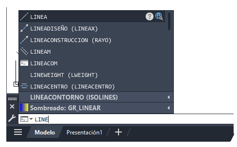 Haga clic en la ventana de comandos y escriba LINEA, pero no pulse Intro.