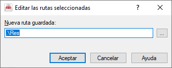 En el cuadro de diálogo Editar rutas seleccionadas, especifique la nueva ruta absoluta o relativa para los archivos de referencia. Haga clic en Aceptar.
