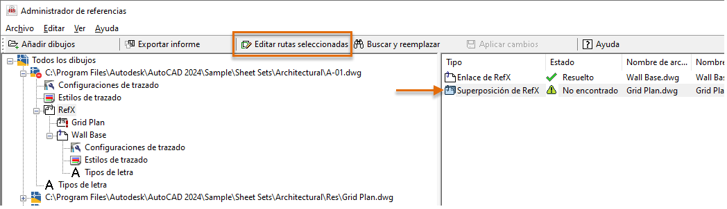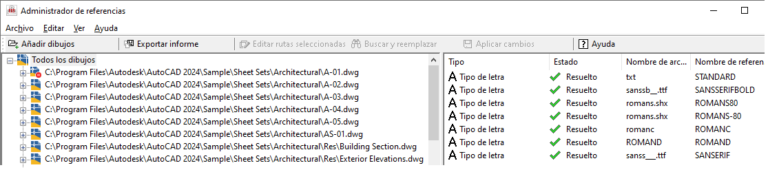 Inspeccionar más de un dibujo a la vez para busca los archivos de referencia que faltan.