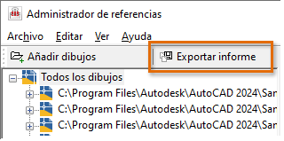 En el Administrador de referencias, tras añadir los archivos de dibujo que se van a evaluar, haga clic en Exportar informe.