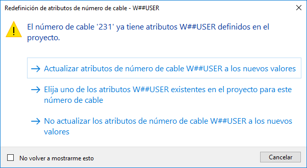 - Haga clic en "No actualizar los atributos de número de cable W##USER a los nuevos valores" para excluir los demás bloques de número de cable de la red de la actualización.