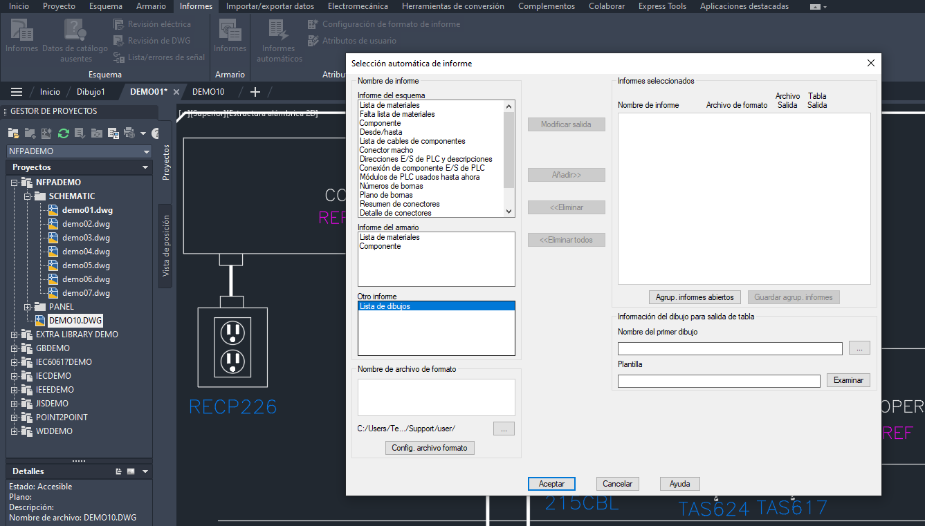Para crear un informe de lista de dibujos con la herramienta Informes automáticos: