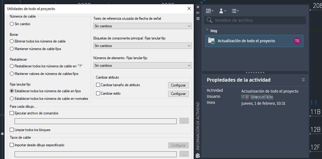 En AutoCAD Electrical 2025, se ha mejorado la función Información de actividad para proporcionar información más detallada sobre los eventos relacionados con las actualizaciones de todo el proyecto.