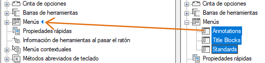 En el panel izquierdo, haga clic en el signo más (+) situado junto a un nodo de elementos de interfaz para expandirlo. Expanda el nodo correspondiente del panel derecho.