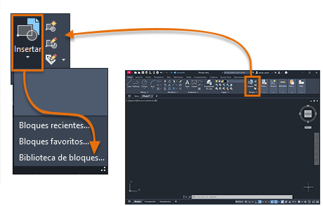 - Cree archivos de dibujo denominados dibujos de la biblioteca de bloques. Cada uno de estos dibujos contiene una familia de definiciones de bloque relacionadas. Al insertar un dibujo de biblioteca de bloques en el dibujo actual, todos los bloques definidos en ese dibujo pasan a estar disponibles en el dibujo actual.